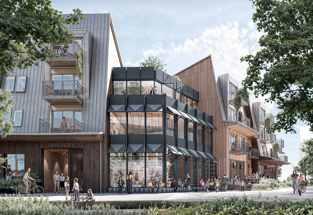 Bydelen er tænkt, så der er plads til mange forskellige former for fællesskaber. Der er de små gårdrum, du deler med dine naboer, de små gader mellem klynger af huse, hvor man mødes med genboen og de større byrum som Playline, hvor hele byen kan samles.