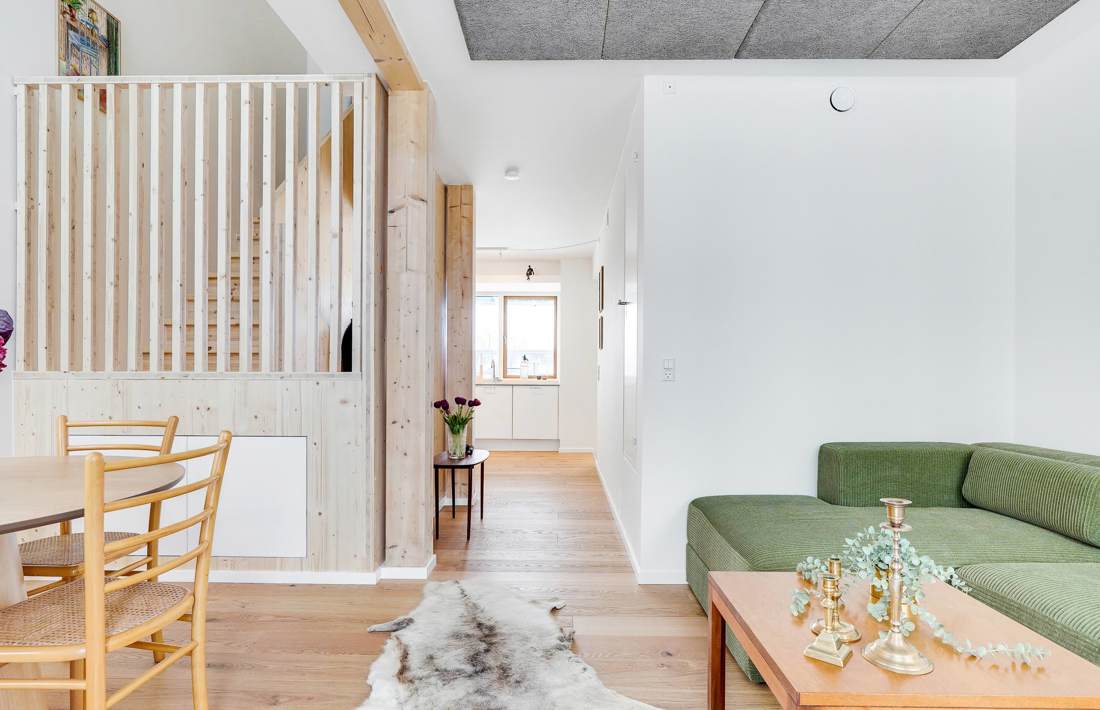 Boligerne i Travbyen er skabt med omtanke for både funktion og atmosfære. De lyse rum og store vinduespartier giver en naturlig åbenhed, hvor hverdagen får plads til at udfolde sig i ro og balance.